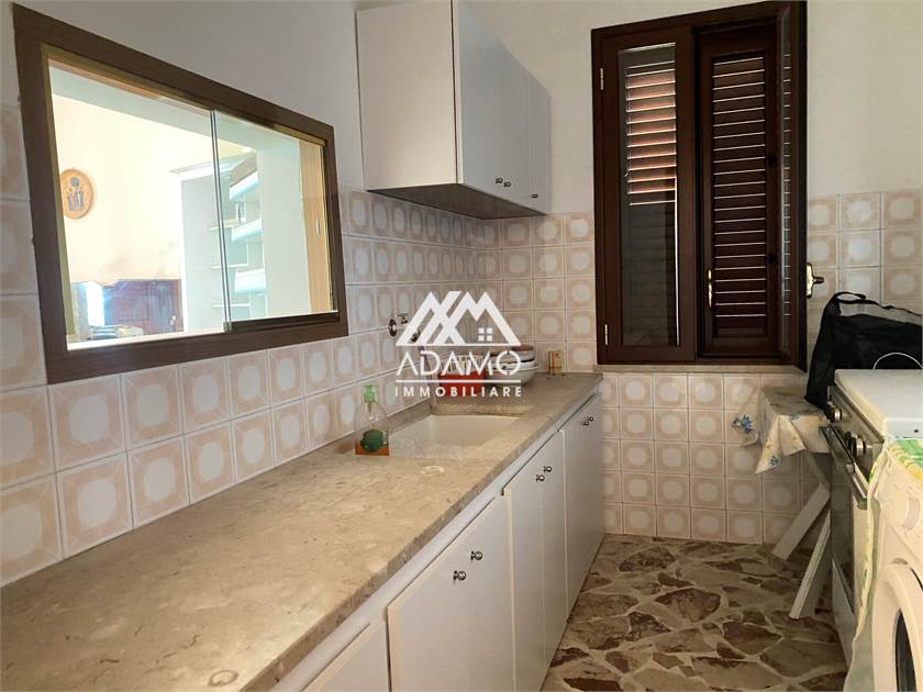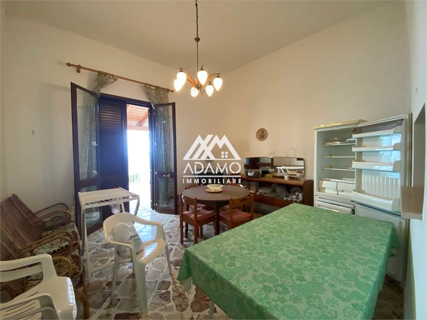 Si entra da un ampio cancello comune con accesso indipendente al proprio appartamento, internamente suddiviso in 3 camere, un bagno, una cucina-soggiorno con veranda vista mare ( mq 17) e piccola porzione di terreno ( mq 54), 1 posto auto all´interno del piazzale comune. Ampie cisterne per approvvigionamento idrico.