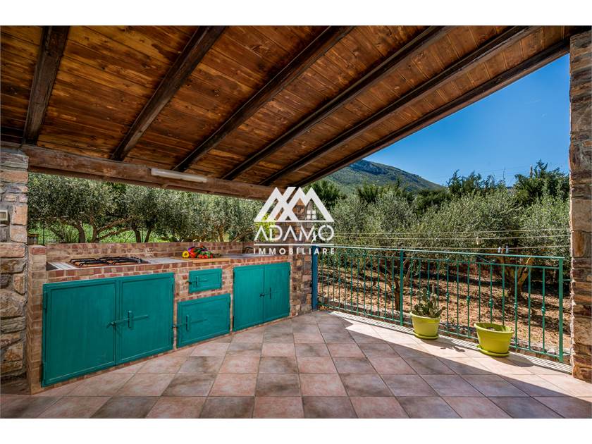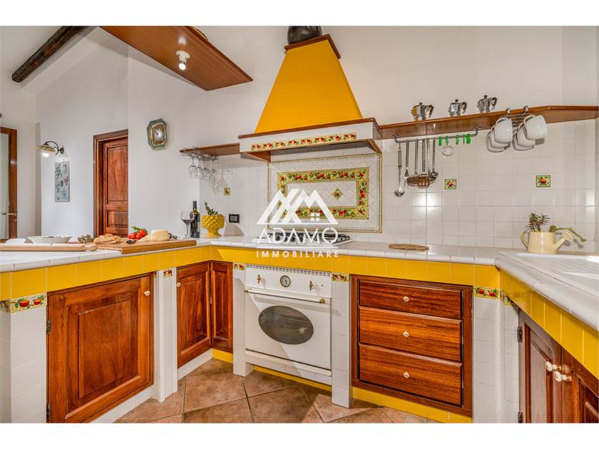 La villa si sviluppa su due livelli, piano terra con cucina soggiorno, 2 camere matrimoniali, 1 bagno completo e un ripostiglio. Scala interna al salone di accesso al piano inferiore con ampio vano aperto con ulteriore cucina rustica, una matrimoniale, 1 singola e 1 bagno completo.